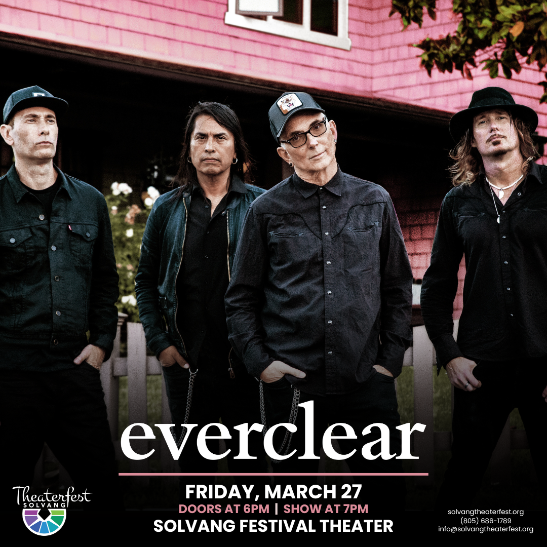 Get ready to sing along to “Santa Monica,” “Father of Mine,” and “Wonderful” when 90s alternative rock legends Everclear take the stage at Solvang Festival Theater on March 27 at 7 PM! (Gates open at 6PM)
