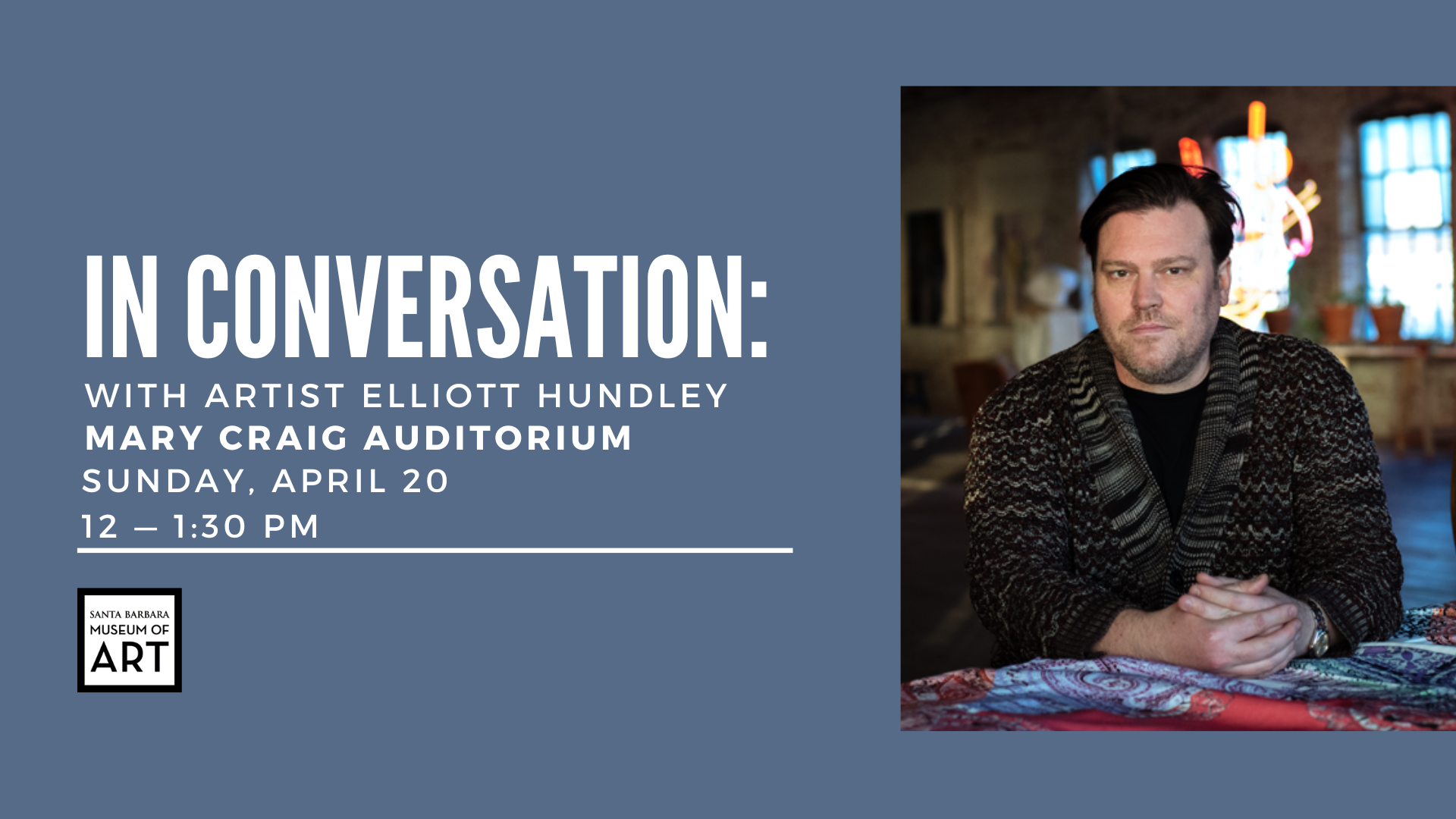 As part of the programming for Proscenium: Elliot Hundley and By Achilles’ Tomb: Elliott Hundley and Antiquity @ SBMA, exhibiting artist Elliott Hundley will join James Glisson, SBMA Chief Curator and Curator of Contemporary Art, in conversation.
