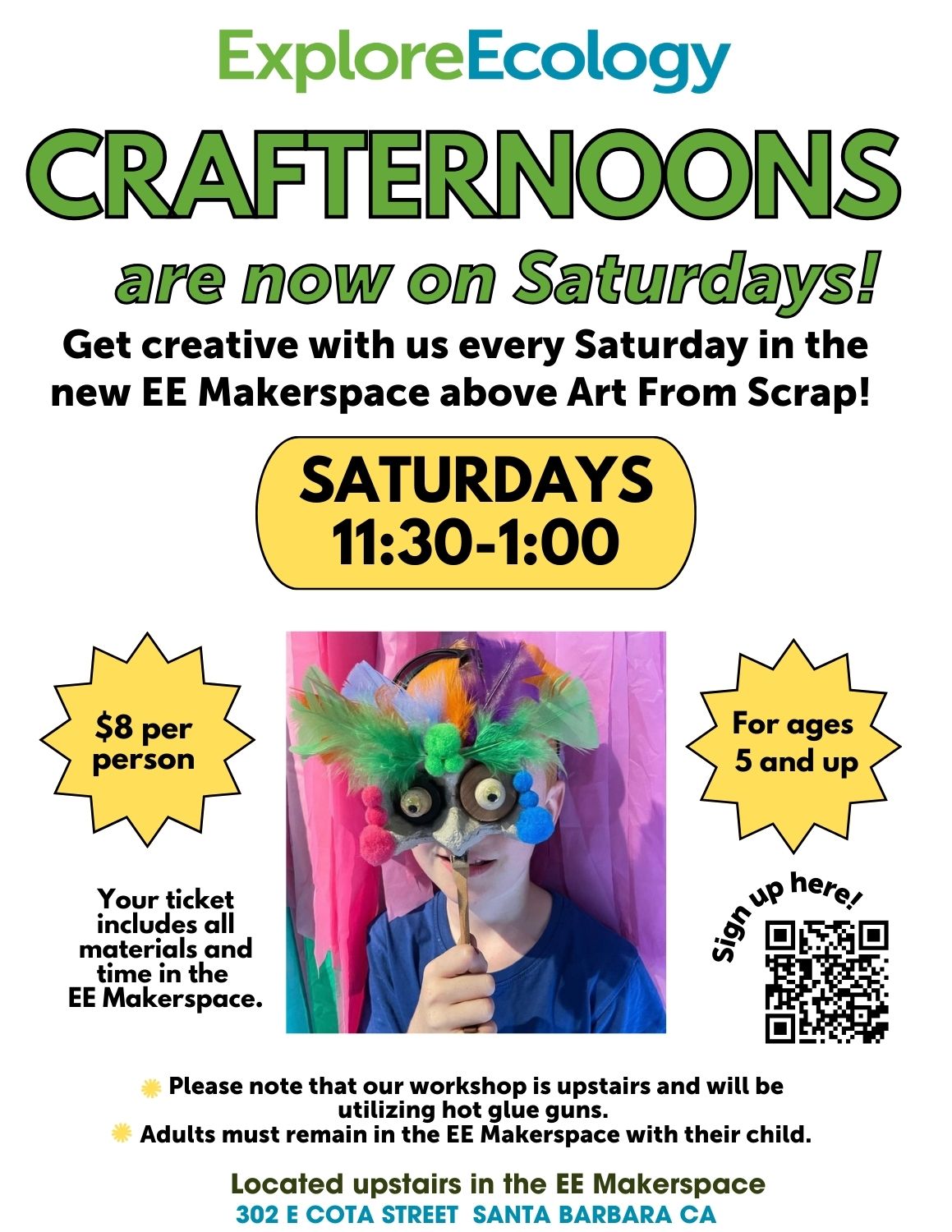 Explore Ecology Makerspace 302 East Cota Street, Santa Barbara, CA, United StatesGet creative with us every SATURDAY, from 11:30 am - 1:00 pm in the EE Makerspace above Art From Scrap! Be inspired by our reuse materials and see where your …
