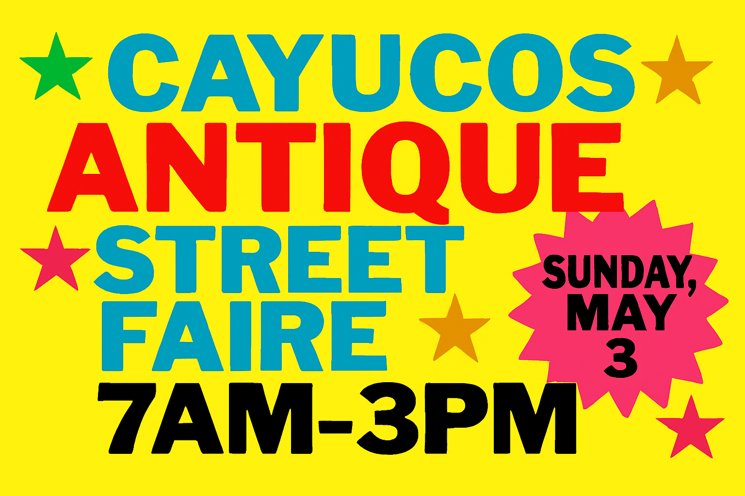 Join us at the Cayucos Chamber of Commerce's upcoming Antique Street Faire on Sunday, May 3rd, 2026, from 7am to 3pm in downtown Cayucos! This family-friendly event near the picturesque …