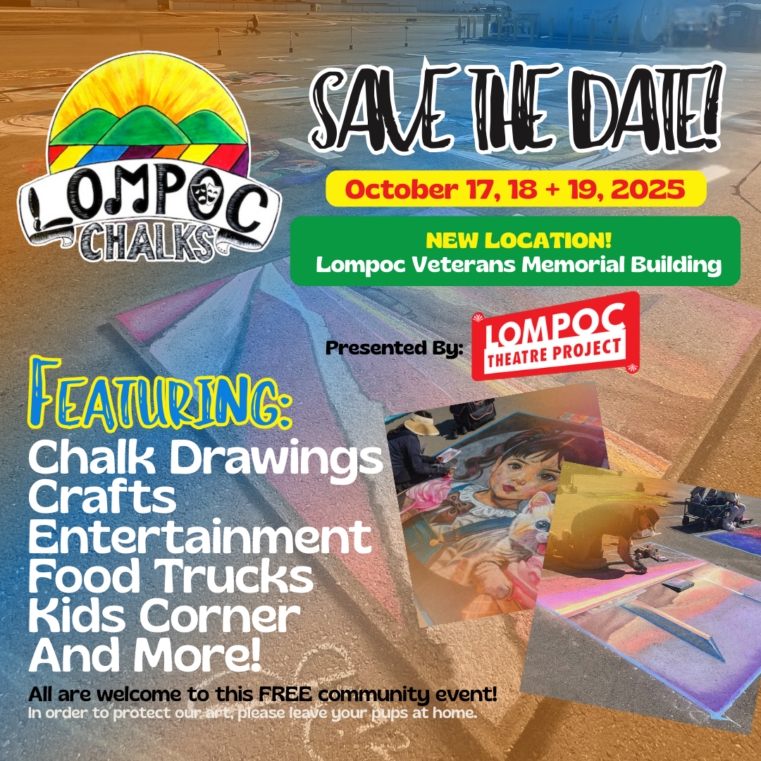 Lompoc Veteran’s Memorial Building 110 e locust ave #102, lompocMingle with this year’s artists and event organizers while enjoying live music, wine tasting, and a brand new Children’s Chalking Class! Admission to this event is free, and food and beverages will be available for purchase.