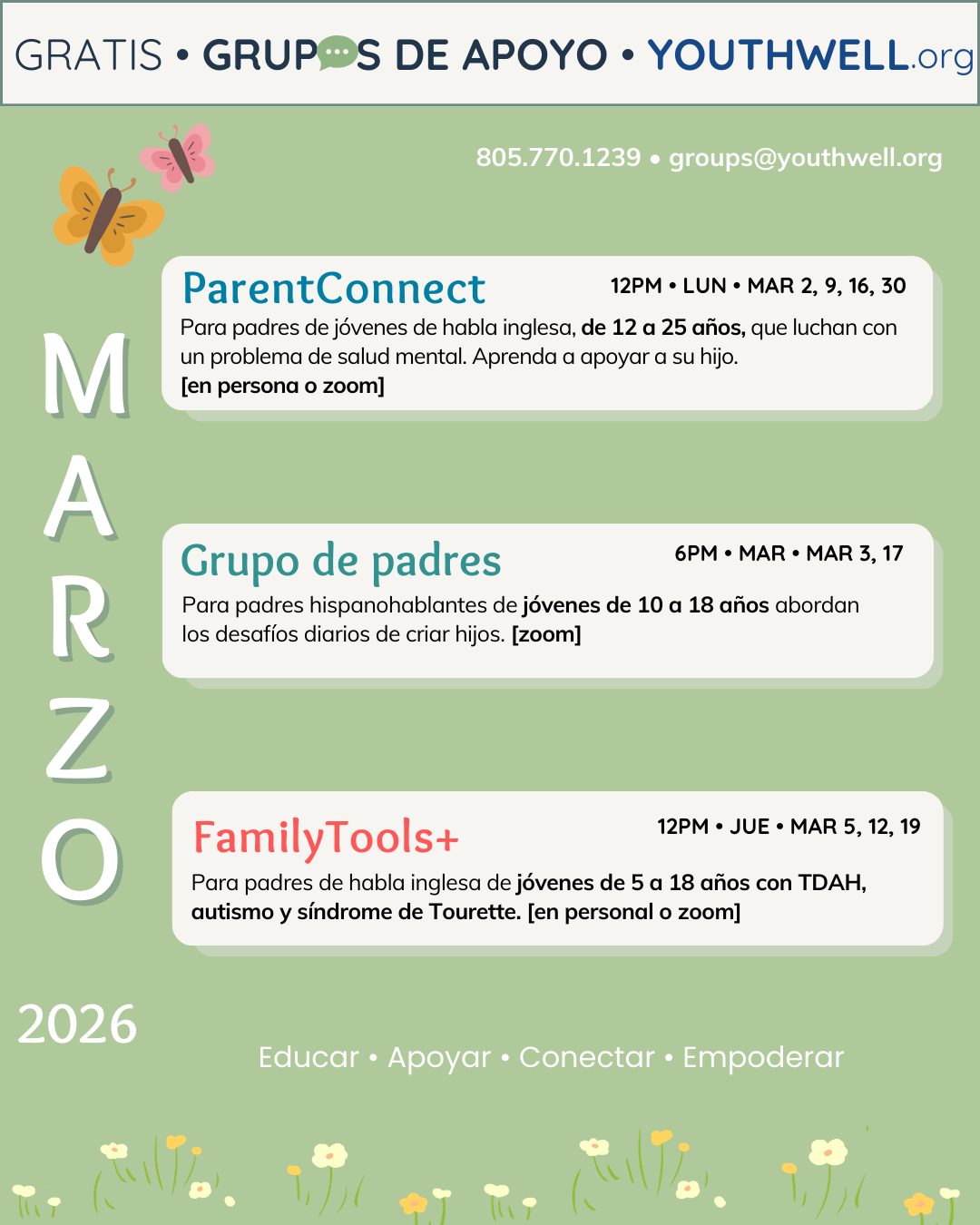 SBCC Wake Campus 300 N. Turnpike Road, Santa Barbara, CA, United States +1 moreFor parents/caregivers of youth, ages 5-18, with ADHD, dyslexia, autism, Tourette's, and uniquely-wired brains. Address the day to day challenges of parenting, ideas for strengthening family connections, and how to prioritize your own self-care and wellness while learning tips from other parents. *Focus on specific needs of parents raising neurodiverse youth: emotional regulation, time management, …